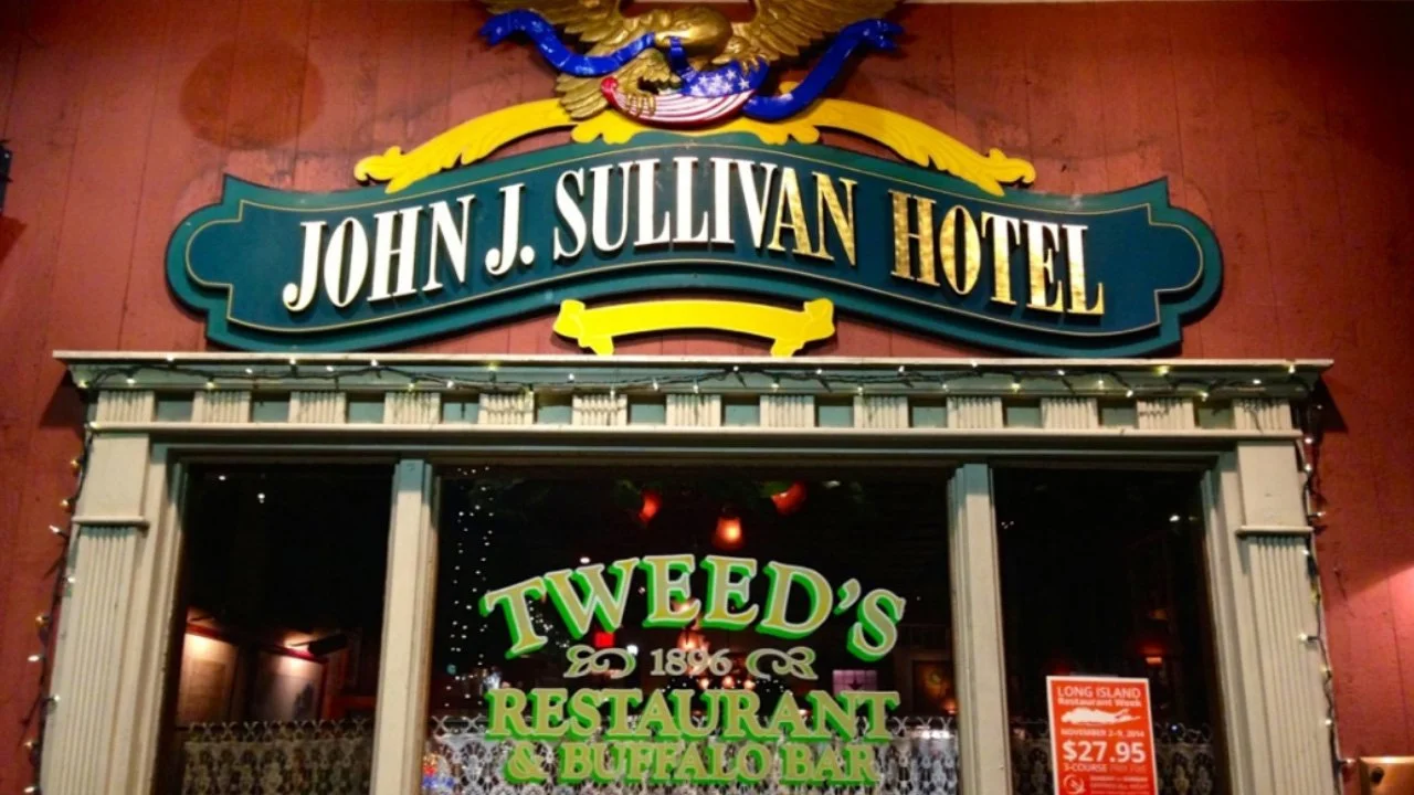This is John J. Sullivan. I was proud to be the No.1 cardholder in the Tammany Society, the political machine that dominated New York City and was made infamous by leaders such as William Marcy Tweed. Everyone called him “Boss Tweed. That’s why the restaurant here is named “Tweed’s.” You may have seen this cartoon Thomas Nast drew showing the Tammany ring, each blaming the next for stealing the people’s money. The big guy was Tweed.
